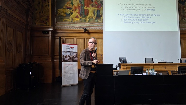 Professor Arnaud Chiolero (Universität Freiburg) zeigte die Vorteile und Herausforderungen einer personalisierten Früherkennung von Krebserkrankungen auf. Eine systematische Früherkennung ist kein Allheilmittel für alle Krebsarten: Die Früherkennung kann zu falsch positiven Ergebnissen führen, ein falsches Gefühl der Sicherheit vermitteln – ein negativer Test bedeutet nicht, dass kein Risiko besteht – oder zu einer Überdiagnose führen. Hinzu kommt noch die Abwägung der Kosten und des Nutzens einer systematischen Früherkennung. Vor diesem Hintergrund werden personalisierte Präventionsansätze entwickelt, bei denen das spezifische Verhalten einer bestimmten Person mit statistischen Datenreihen zu Personen, die an einer bestimmten Krebsart erkrankt sind, in Beziehung gesetzt wird. Auf diese Weise wird ein Risikoprofil erstellt, das Fachleuten dabei hilft, die für eine Person am besten geeigneten Früherkennungsmassnahmen und deren Häufigkeit zu bestimmen. Dieser Ansatz ist zwar vielversprechend, doch Professor Chiolero wies darauf hin, dass es (noch?) keine eindeutigen Belege dafür gibt, dass er wirksamer ist als systematische Früherkennungen. Grundsätzlich ist es unbedingt erforderlich, über zuverlässige und ausreichende Daten zu verfügen. Schliessllich müssen auch Aspekte wie die Akzeptanz in der Bevölkerung und die sozialen Ungleichheiten, die eine risikobasierte Früherkennung mit sich bringen könnten, berücksichtigt werden.