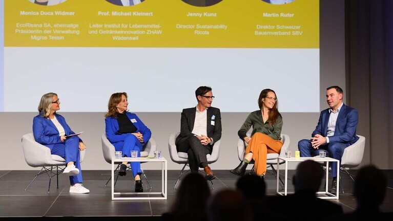 Den Abschluss bildete eine Podiumsdiskussion, in der Branchenvertreter – darunter Monica Duca Widmer (EcoRisana SA), Prof. Michael Kleinert (ZHAW), Jenny Kunz (Ricola) und Martin Rufer (Schweizer Bauernverband). Moderiert wurde der Nachmittag von Sonja Hasler.
