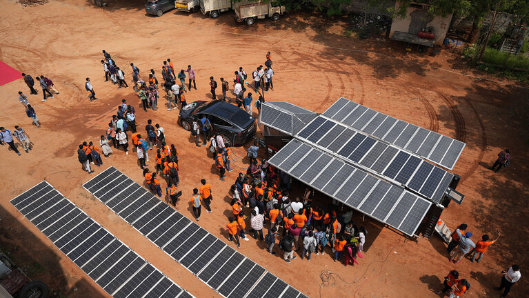 Das Fahrzeug wird von Solarpaneelen angetrieben, die sich wie Flügel ausbreiten und Sonnenenergie in Strom umwandeln. Die Struktur besteht grösstenteils aus recycelten oder nachhaltigen Materialien. Der Solar Butterfly bietet einen Wohnraum mit Küche, Schlafplätzen und Sanitäranlagen - alles energieeffizient und nachhaltig gestaltet.