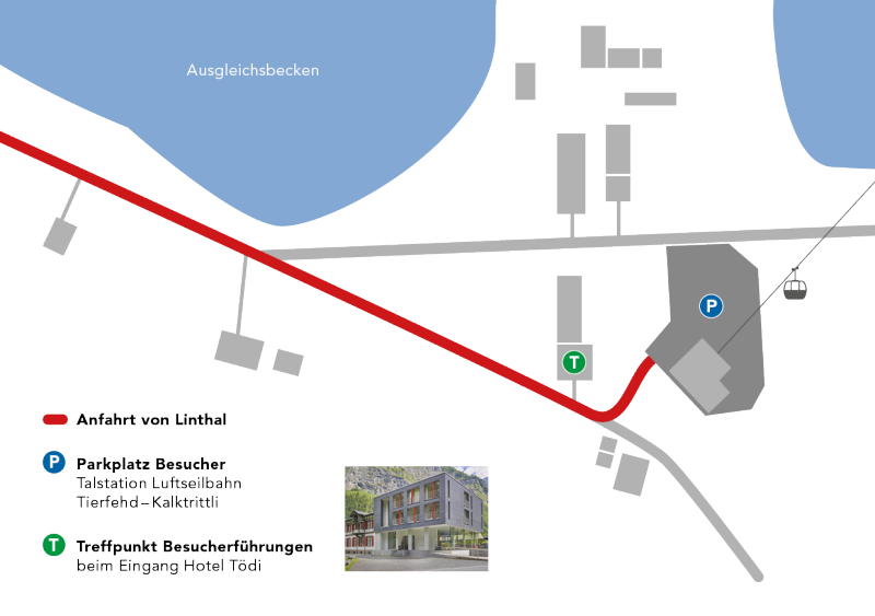 Anreise: Mit dem Auto ab Zürich oder von Chur/Sargans über die Autobahn A3 bis Ausfahrt Nr. 44 Niederurnen; danach Hauptstrasse Richtung Glarus/Klausen (ca. 30 km) bis nach Linthal und weiter nach Tierfed. Bei der Talstation der Luftseilbahn Tierfed – Kalktrittli stehen Ihnen Parkplätze zur Verfügung.Tierfed ist mit den öffentlichen Verkehrsmitteln nicht erreichbar. Bitte beachten Sie die Witterungsverhältnisse.